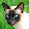 Lorsqu’on parle de races félines et de formes idéales, tout est plus compliqué que ce qu’on croit au premier regard. Il existe en effet deux types de chat Siamois. Le premier est le Siamois oriental (à ne pas confondre avec l’Oriental), qui a la tête triangulaire, avec un chanfrein long et droit comme une tablette, les oreilles à base large terminées en pointe et attachées bas de façon que la pointe soit le plus possible alignée avec le sommet du crâne. Il a enfin les yeux bleus, en amande, inclinés vers le nez.
